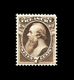 614 og O76 image#O76, 7c Treasury, wonderfully select mint example, brilliantly fresh and bright, prooflike color and impression on immaculate paper, excellent centering, full clean o.g. that has been only lightly hinged, extremely fine and especially scarce thus; 2003 PF certificate. (Image) 100.00