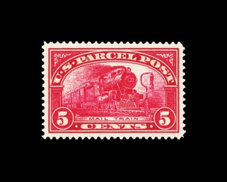 620 nh Q5 image#Q5, 5c Parcel Post, an especially choice mint example, being marvelously well centered within very large margins, sumptuously rich color in a particularly deep shade, o.g., n.h., extremely fine; an immaculate gem. (Image) 80.00