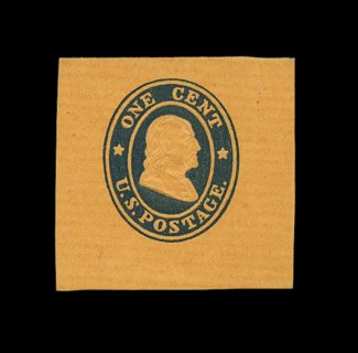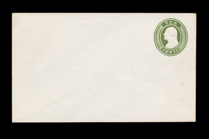 681 ogc U15 image#U15, 10c Green on white, die 7, size 7, knife 20, wmk. 1, mint entire with deep color and detailed impression, trace of edge soiling, still very fine and attractive; ex-White (UPSS #25). (Image) 850.00