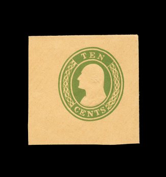 685 og U18 image#U18, 10c Green on buff, full corner mint cut square, balanced 37x39mm, intense deep color and strong embossing, very fine. (Image) 400.00