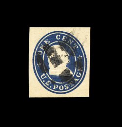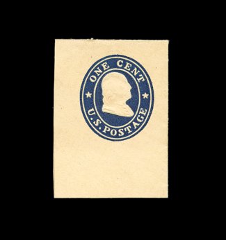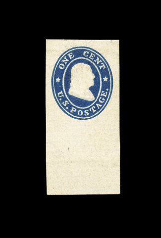 687 ogc U19 var. image#U19 var., 1c Blue on buff, star die, die 12, size 7, knife 22, no watermark, a rare mint entire being the variety without watermark, which is listed only in UPSS, exceptionally fresh and clean, strong detailed embossing, extremely fine; ex-Barkhausen, Floyd (UPSS #30a-0; $1,000.00). (Image) Est. 500-750