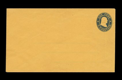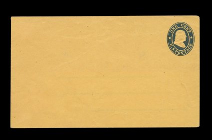 694 ogc U24 image#U24, 1c Blue on amber, star die, die 13, size 7, knife 24, wmk. 1, fresh mint entire, intense deep blue color, Scott has now changed the paper color to amber as listed in the UPSS catalog, this entire shows the amber color well with a yellow cast, unlike the previous cut square which has a pinkish cast, very fine and choice; ex-Barkhausen (UPSS #44). (Image) 725.00