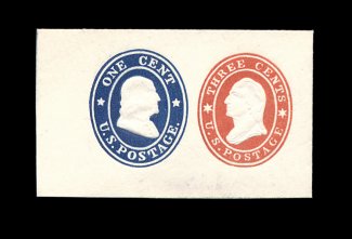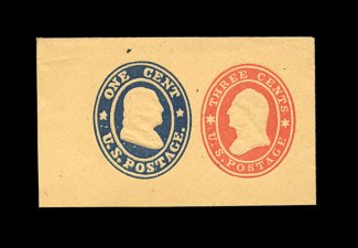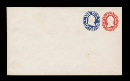 697 ogc U28 image#U28, 3c + 1c Red and blue on white, star die, die 14, size 7, knife 20, wmk. 1, a most attractive mint entire, fresh with highly detailed embossing, very fine and choice; ex-Wunsch, Floyd (UPSS #57). (Image) 850.00