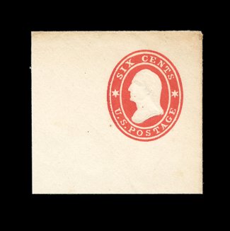 700 ogc U30 image#U30, 6c Red on white, star die, die 10, size, 21, knife 94, wmk. 1, an exceptionally rare mint star die entire, nice color and strong embossing, this is the only size envelope in which this value comes, some edge faults that are not obtrusive including tiny edge tear at far top left, otherwise very fine; seldom offered as an entire and this would yield a large, extremely fine cut square which is a rarity in its own right (UPSS #62). (Image) 6,000.00