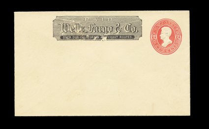 766 ogc U154 image#U154, 2c Vermilion on amber, die 54, size 6, knife 19, wmk. 5, lovely small mint entire with Wells, Fargo & Co. printed frank, exceptionally fresh and crisp with sharp embossing, extremely fine and scarce envelope; signed R.A. Champagne; ex-Barkhausen (UPSS #352). (Image) 450.00