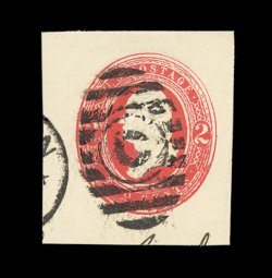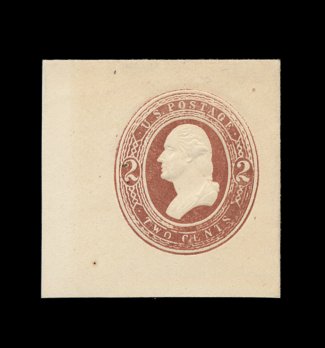 813 og U249 image#U249, 2c Red on fawn, round "O" in "TWO", mint cut square, 31x34mm, fresh colors and nice impression, small corner crease completely in the margin, otherwise very fine; ex-Lilly. (Image) 1,150.00