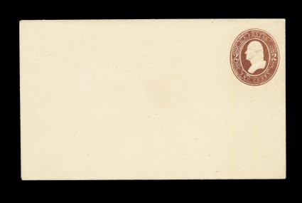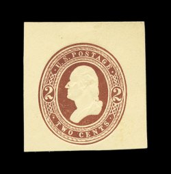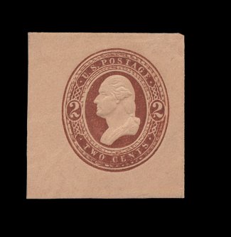819 ogc U274 image#U274, 2c Brown on amber, round "O" in "TWO", die 78, size 7, knife 31, wmk. 6, fresh mint entire with sharp edges and corners, characteristic overinked impression that is found on this envelope, extremely fine; ex-Baum (UPSS #756). (Image) 400.00