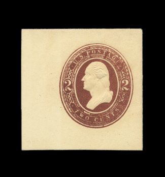 816 og U272 image#U272, 2c Brown on fawn, 2 links, a remarkable quality mint cut square of this rarity, being a full corner that measures 38x41mm, strong color and very fresh paper, extremely fine; when this was offered in our 2000 Larry Lyons Private Collection Sale it was the first mint #U272 cut square we had ever offered, it remains the finest example that we have ever offered and it is hard to imagine a finer example exists; an exciting addition to an important collection of cut squares; signed Maisel, R.A. Champagne and accompanied by a 1995 PSE certificate; ex-Lyons. (Image) 9,000.00