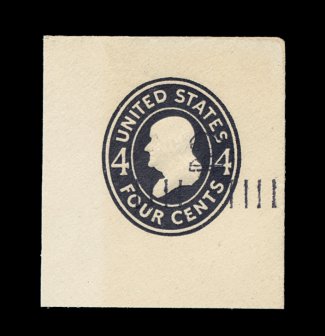 875 og U463A image#U463A, 2c on 4c Black on white, type 3 surcharge, handsome and select example of this mint cut square, being a full corner measuring 44x49mm, fresh white paper with intense black imprint, extremely fine; a difficult issue, especially in this premium condition; ex-Barkhausen. (Image) 1,400.00