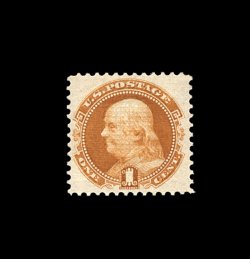 100 og 112 image#112, 1c Buff, near perfect centering, with large margins all around, fabulously fresh and bright, deep luxuriant color and impression, full pristine o.g. that has been only lightly hinged, extremely fine gem; a terribly challenging stamp to find in such select quality; 1982 PF certificate. (Image) 825.00