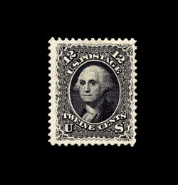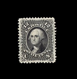 84 ng 97 image#97, 12c Black, "F" grill, unused, incredibly well centered within unusually large margins, especially deep and luxuriant color, razor-sharp impression which is most uncommon to find on this value, faint and light horizontal crease at top, otherwise extremely fine and quite handsome; 2000 PSE certificate. (Image) 1,150.00
