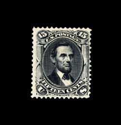 96 ng 108 image#108, 15c Black re-issue, unused (regummed), fairly well centered, deep rich shade, light horizontal crease, nearly very fine appearance for this rare stamp; only 397 issued; 1999 PSE certificate. (Image) 2,500.00