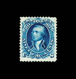 99 ng 111 image#111, 90c Blue re-issue, handsome unused example of this re-issue rarity, sumptuously rich color in a deep shade, razor-sharp impression, quite well centered, nearly very fine; only 317 of this high value were issued; 1975 PF certificate. (Image) 3,900.00