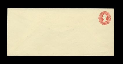 998 ogc UX7b image#UX7b, 1c Black on buff, printed on both sides, mint example of this scarce variety, impression on one side inverted to the other, inking is very close to the same intensity on each side, unlike many that show insufficient inking on one side, slight wear with minute wrinkles and tiny spot on one side, nearly very fine for this (UPSS #S6c). (Image) 800.00