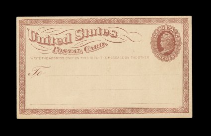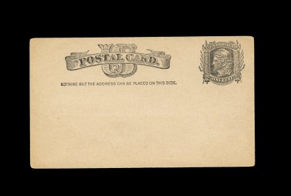 996 ogc UX1 image#UX1, 1c Brown on buff, unusually fresh and attractive mint example of the first postal card, easily discernible large watermark, very fine and choice (UPSS #S1). (Image) 350.00