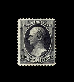 157 og 176 image#176, 30c Greenish black special printing, without gum as issued, an incredibly select example of this rarity, possessing exceptional physical characteristics, which place it among the finest available of the approximately 45 to 50 still in existence, including being flawlessly centered amid uncharacteristically large margins, intensely rich color and impression on bright paper, while scissor separated as usual, the perforations are much more intact than typically encountered, an extremely fine gem; signed W.H.C. (Warren H. Colson) and accompanied by a 1993 PF certificate. (Image) 12,000.00