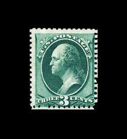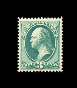 160 nh 184 image#184, 3c Green, extraordinarily well centered within very large margins, deep luxuriant color, unblemished o.g., n.h., extremely fine; a "post office" fresh gem; 2001 PSE certificate. (Image) for hinged 110.00