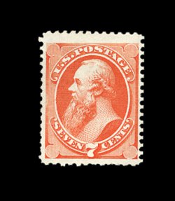 151 og 171 image#171, 7c Reddish vermilion special printing, without gum as issued, an impressive example of this rare stamp, being among the very few existing examples whose perforations are essentially intact all around, additionally this stamp possesses a wonderful overall brilliance, with deep vibrant color and a prooflike impression on bright white paper, extremely fine for this; among the finest of the approximately 50 Seven Cent Hard Paper Special Printings believed to exist; 1959 APS and 2002 PF certificates; ex-Lessin. (Image) 3,500.00