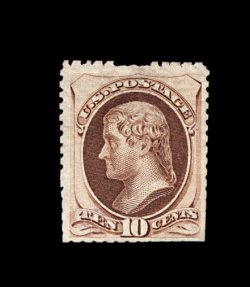 152 og 172 image#172, 10c Pale brown special printing, without gum as issued, deep shade and a detailed impression, scissor separated as nearly all of the approximately 40 examples that are thought yet to still exist of the rare Ten Cent Hard Paper Special Printing, miniscule margin tear at bottom, otherwise very fine for this; 1999 APS certificate. (Image) 14,500.00