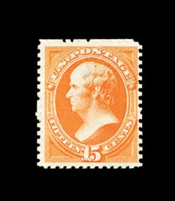 154 og 174 image#174, 15c Bright orange special printing, without gum as issued, an exceedingly choice example of one of the most difficult of all the Hard Paper Special Printings to find in premium condition, being one of the very few in existence whose perforations, while scissor separated as almost always, are completely intact, in fact, we estimate that well over two thirds of the existing population have their perforations trimmed off on one or more sides, brilliantly fresh, with radiant color and impression on immaculate paper, well centered, very fine; fewer than 40 examples of this value are thought to still exist; 1998 PF certificate. (Image) 14,500.00