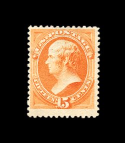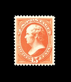 161 nh 189 image#189, 15c Red orange, fabulously fresh mint example, possessing the most vibrant color imaginable in a deep rich shade, plus its impression is prooflike on immaculate paper, marvelously well centered within very large margins, pristine o.g., n.h., extremely fine gem; a stamp with marvelous eye appeal. (Image) for hinged 350.00
