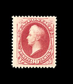 171 og 202 image#202, 90c Dull carmine special printing, without gum as issued, a spectacular quality select example of this important United States rarity, which clearly places it among the very finest in existence, possessing outstanding centering for this within incredibly wide margins unlike any other example we have seen, rich characteristic special printing color on bright paper, fully intact perforations, extremely fine; less than 40 copies exist of this value, which is one of the most difficult of all special printings to find in this gem quality; one of the highlights of the McCarthy collection; 2000 PSE and 2001 PF certificates. (Image) 25,000.00