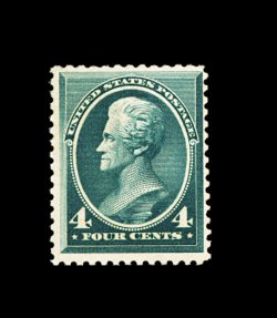 176 og 211D image#211D, 4c Deep blue green special printing, without gum as issued, especially intense color and a deeply etched impression, very fine. There are only 26 recorded examples of this immensely rare stamp, 25 of which have been certified by the Philatelic Foundation. The number known exactly coincides with Post Office records which indicate 26 copies of the Four Cent Special Printing were sold. Therefore, it is highly unlikely any further copies will ever be found that will be certified by the PF. A handsome example of one of the rarest of all the Special Printings. Once part of one of the two known blocks, both of which were broken up decades ago. Accompanied by a 1954 PF certificate for a block of four, this being the top right stamp, plus 1976 and 2002 PF certificates as a single; ex-"Ambassador" collection, Lutwak, Greenblatt and Lessin. (Image) 37,500.00