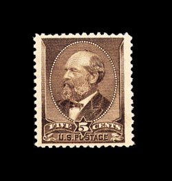 173 og 205C image#205C, 5c Gray brown special printing, without gum as issued, wonderfully well centered within large margins, rich luxuriant color in the distinctive gray brown shade attributed only to the Special Printings, prooflike impression on fresh paper, choice very fine. A marvelous example of this incredibly rare stamp. A total of only 22 different copies have been certified by the Philatelic Foundation as genuine Five Cent Garfield Special Printings. Because of the extreme rarity of this stamp, very few collectors will ever have a chance to own a copy of this elusive Special Printing, and fewer still can acquire one in such outstanding quality. Signed W.H.C. (Warren H. Colson) and accompanied by 1961 and 2001 PF certificates; ex-T. Charlton Henry, Kharasch and Lessin. (Image) 40,000.00