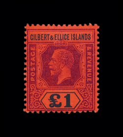 197 og imageS.G. #24, 1924 £1 Purple and black on red, bright and fresh, o.g., lightly hinged, very fine (Scott #26; $600.00). (Image) £550