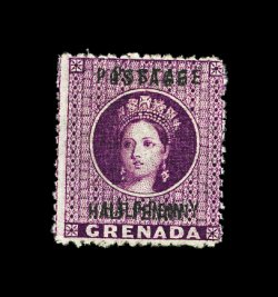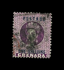 201 O imageS.G. #13a, 1875 1/- Mauve, "SHLLIING" variety, used, fresh color, black and red cancels, fine; a scarce error; signed Calves and accompanied by a 1986 RPS certificate (Scott #11a; $650.00). (Image) £700