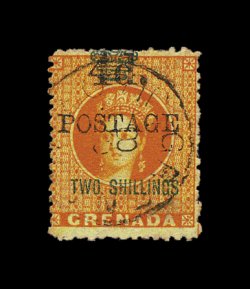 204 O imageS.G. #41a, 1888 "4d./POSTAGE" on 2/- Orange, upright "d", used, strong color, light c.d.s. cancel, fine; 1989 BPA certificate (Scott #33; $400.00). (Image) £400