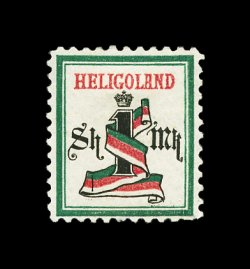 210 og imageS.G. #18a, 1879 1M Deep green, scarlet and black, perf. 11 1/2, fresh mint single in this scarce perforation, attractive bright colors, o.g., very fine example of this stamp of which very few were issued; signed Schlesinger and others (Scott #24; $1,000.00). (Image) £1,000