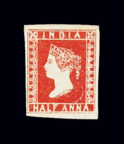 214 og imageS.G. #1, 1854 1/2a Vermilion, without gum as issued, four full to mostly large margins, lovely vibrant color and an especially sharp impression, a very fine example of this scarce stamp that was prepared but never issued; 1991 BPA certificate (Scott #1; $700.00). (Image) £800