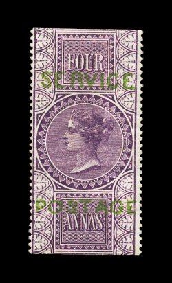 216 og imageS.G. #O17, 1866 4a Purple official, an exceptionally fresh mint example of this rare official, with deep luxuriant color and a crisp detailed impression, part o.g., very fine; very few examples of this stamp can be found in this premium mint condition; 1983 Friedl certificate (Scott #O13; $2,750.00). (Image) £3,250
