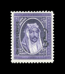 289 og imageS.G. #34a, 1922 (Nov.) 20Pi on 20Pi Pale grey, violet overprint, fresh color, o.g., lightly hinged, small red owner's handstamp on reverse, very fine; only 179 printed; 1989 BPA certificate as a #34 with "deep violet" overprint (Scott #27A; $850.00). (Image) £900