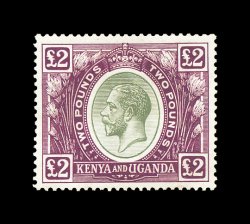 302 og imageS.G. #96, 1925 £2 Green and purple, particularly well centered mint single, intense colors on fresh white paper, o.g., extremely fine; 1975 Grobe certificate (Scott #38; $750.00). (Image) £600