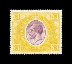 303 og imageS.G. #97, 1925 £3 Purple and yellow, lovely mint single with radiant colors, fresh white paper, very well centered, o.g., l.h., extremely fine and choice example of this pretty stamp (Scott #39; $1,100.00). (Image) £800