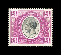304 og imageS.G. #98, 1925 £4 Black and magenta, unusually fresh mint single, luxuriantly rich colors on bright white paper plus sharp detailed impressions, well centered, and possessing full o.g. that is very lightly hinged, choice very fine (Scott #40; $1,750.00). (Image) £1,600