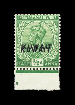 308 og imageS.G. #1a, 1923 1/2a Emerald, double overprint, bottom sheet-margin single, o.g., lightly hinged, very fine; 1988 BPA certificate (Scott #1 var.). (Image) £200