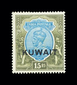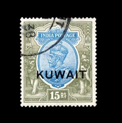 310 O imageS.G. #29, 1937 15R Blue and olive, used, exceptionally well centered, fresh colors, neat portion of a c.d.s. cancel, choice very fine; an especially difficult high value to find postally used; 1994 BPA certificate (Scott #35; $875.00). (Image) £750