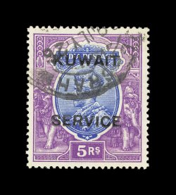 313 O imageS.G. #O12, 1923 5R Ultramarine and violet official, used, excellent centering, bright colors, Basrah c.d.s. postmark, choice very fine (Scott #O12; $200.00). (Image) £400