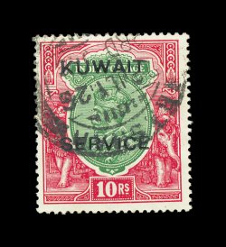 314 O imageS.G. #O13, 1923 10R Green and scarlet official, used, exceptionally fresh, Basrah c.d.s. postmark, very fine; scarce postally used; 1994 BPA certificate (Scott #O13; $225.00). (Image) £350