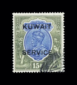 315 O imageS.G. #O14, 1923 15R Blue and olive official, used, well centered, rich colors, light ms. mark in top margin, very fine; seldom seen genuinely used; 1994 BPA certificate (Scott #O14; $375.00). (Image) £475