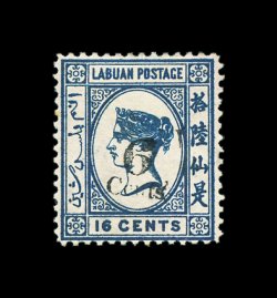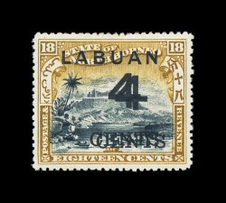 329 og imageS.G. #138, 1905 25c Indigo overprinted "LABUAN", well centered, o.g., with some gum staining as usual on this stamp, very fine appearance; 1990 BPA certificate (Scott #119; $950.00). (Image) £1,100