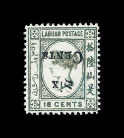 326 og imageS.G. #50a, 1892 "SIX CENTS" on 16c Grey, inverted surcharge, o.g., certificate states "sulphurised" but this is slight and actually gives the stamp a richer grey color, very fine; 1990 BPA certificate (Scott #41a; $375.00). (Image) £450