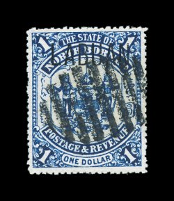 330 O imageS.G. #139, 1905 $1.00 Blue overprinted "LABUAN", used, c.t.o. cancel which is the only way this stamp exists (mint and postally used examples are not known), exceptionally fresh color and paper, very well centered, very fine and choice; 2001 BPA certificate; ex-Gibralter, Rubin (Scott #120; $625.00). (Image) £700