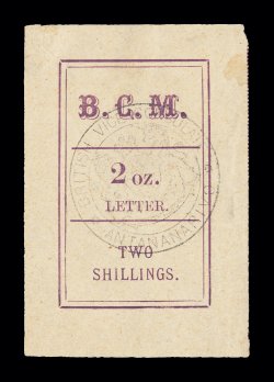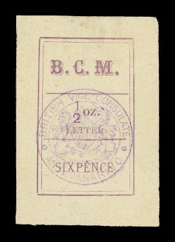 335 ng imageS.G. #1a, 1884 6p Magenta, with violet handstamp, an unusually handsome unused example of this very rare variety with violet seal, bright colors, very small thin spots as is usual, but much nicer than usually found especially on this scarce issue, extremely fine for this (Scott #13; $1,750.00). (Image) £1,800