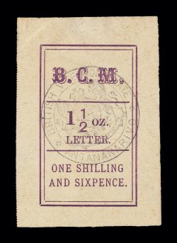 320 ng imageS.G. #22, 1883 $1.00 on 16c blue, red manuscript surcharge, an impressive unused example of this rare provisional, made by the postmaser A.S. Hamilton at the request of the local coal mine manager for franking parcels, and never sold at the post office counter, deeply rich color, nicely centered, very fine; 1958 Friedl certificate (Scott #15; $2,750.00). (Image) £3,000