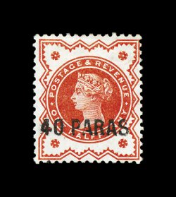 25 og imageS.G. #7, 1893 "40 PARAS" surcharge on 1/2p Vermilion, bright fresh color, o.g., h.r., light horizontal crease at top, otherwise very fine; 1988 Brandon certificate (Scott #6; $500.00). (Image) £425