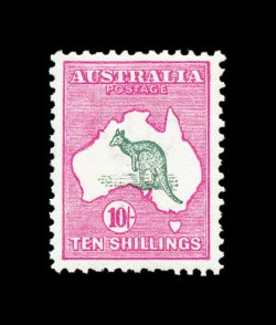 32 og imageS.G. #14, 1913 10/- Grey and pink, well centered, brilliantly fresh colors, o.g., lightly hinged, very fine (Scott #13; $600.00). (Image) £600